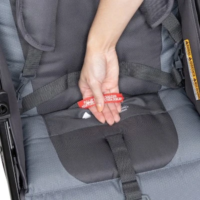 - Child Tray with large cup holder and snack tray. Rotates up or removable for child to easily get in and out of the stroller