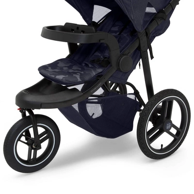 Explore all life has to offer with the babyGap Trek Jogging Stroller by Delta Children! Designed for the future in every possible way, this jogger features fabric made from recycled water bottles. Plastic drinking bottles are sorted, cleaned and shredded into flakes that become the yarn the seat fabric is made from. A great choice for your child and the planet, this versatile jogging stroller is built to handle rugged running trails or smooth city streets. Its durable frame is outfitted with a front swivel wheel, airless puncture-proof tires and an extendable, soft knit canopy with sun visor and peek-a-boo window, and it comes with a safety tether to attach to your wrist when jogging/running. Incredibly comfortable, this stroller has a 5-point safety harness with cushioned shoulder pads, reclining seat, convenient child tray, leatherette handlebars and tons of storage. A spacious storage basket and removable parent organizer ensures you have enough space for all your essentials. For easy storage or travel, quick release back wheels allow for compact folding. Recommended for infants up to 50 pounds.