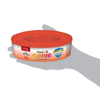 Diaper Genie Clean Laundry Scent refill bags with Max Odor Lock™ feature upgraded and improved technology while offering the same trusted odor protection you know and love. Our Max Odor Lock™ refills consist of multi-layers to seal in dirty diaper odors while the built-in odor controlling antimicrobial inhibits bacteria growth on the film to help protect from germs. The Clean Laundry Scent helps neutralize strong diaper odors to keep your Nursery smelling fresh and clean. Our continuous bags hold up to 270 newborn sized diapers per refill so you can spend less time making trips to the trash and more time with your baby. When it’s emptying time, the opaque film hides the dirty diapers so you won’t have to relive all of those big blowouts – Phew! Since Clean Laundry Scent refills are made to fit all Diaper Genie pails, you won’t ever have to rely on anything but the best to keep your baby’s nursery smelling fresh and staying clean. Only Diaper Genie refills guarantee Odor Lock Protection. If you’re not completely satisfied with your Diaper Genie refill bags, you can return for a full refund or replacement.