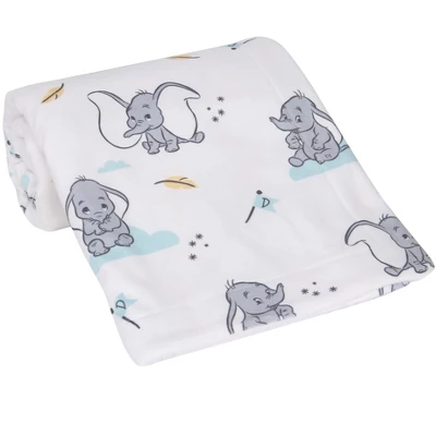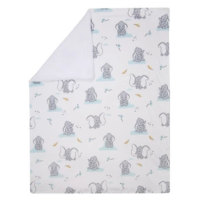 This warm and cuddly Dumbo blanket will add a little wonder and whimsey for your little one. Cute poses feature Dumbo’s large floppy ears which give him the ability to glide in the air. He is fun loving, innocent and playful. The front of the blanket is on a soft white minky ground, and the back is a cozy white faux shearling. It is sized at 30” X 40” making it a great stroller blanket. It is ideal for trips to the park, running errands, and is great for moms, dads, and little ones on the go. It is machine washable for easy care.