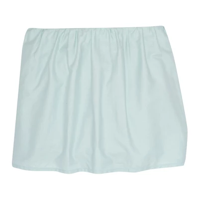 This 3-piece crib baby bedding set includes one quilt, one breathable 100% cotton fitted crib sheet, and one shirred crib skirt. Pretty daisies are scattered all over this stunning reversible quilt. The front side is a beautiful, soft shade of blue aqua mist with white daisies and reverses to a clean white ground with aqua mist daisies. The breathable 100% cotton fitted crib sheet is on a white ground with blue daisies sprinkled all around. There is elastic all the way around ensuring a safe and secure fit on a standard size crib mattress measuring 28” X 52”. The cotton sateen crib skirt adds the finishing touch to your child’s crib. It has a 14 ½” drop, is shirred all around, and has split corners for easy placement around the crib posts.