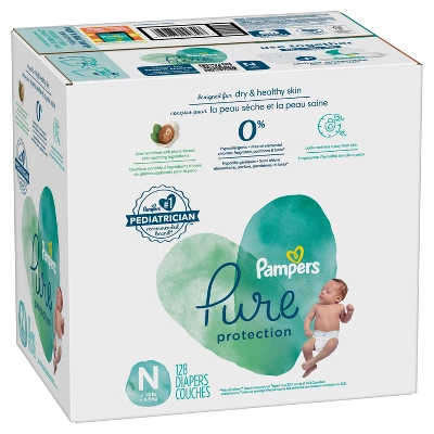 - Pampers Pure Protection diapers are crafted with thoughtfully chosen materials for dry and healthy skin