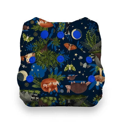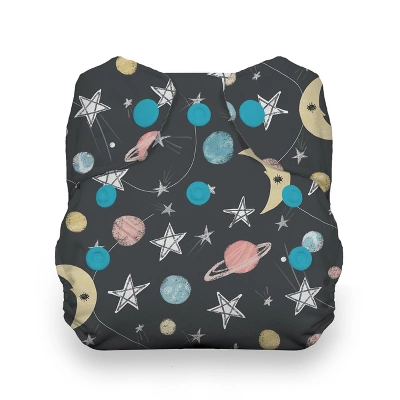Thirsties Newborn All In One was carefully designed with the needs and comfort of a new baby in mind. This trim-fitting diaper includes an umbilical cord snap down (only available in snap closure version) and adjustable rise, providing a custom fit for most babies from (5-14 lbs). Our convenient Newborn All in One delivers absorbency, waterproof protection and adjustability all rolled up into a stylish, comfortable, and extremely effective cloth diaper. A built-in, three-layer microfiber terry soaker absorbs an amazing seven times its weight in liquid. The soaker is topped with our stay-dry microfleece which keeps your baby feeling dry. An additional layer of terry lies between the microfleece and TPU body of the diaper providing a last line of defense. The soaker is sewn in on one side (at the top of the diaper), which makes adding extra absorbent layers a cinch and tremendously decreases drying time…it’s the fastest drying diaper we’ve ever created! All in all, Thirsties Newborn AIO gets a BIG thumbs-up from your wallet, your family, your daycare facility, and occasional caretakers alike.